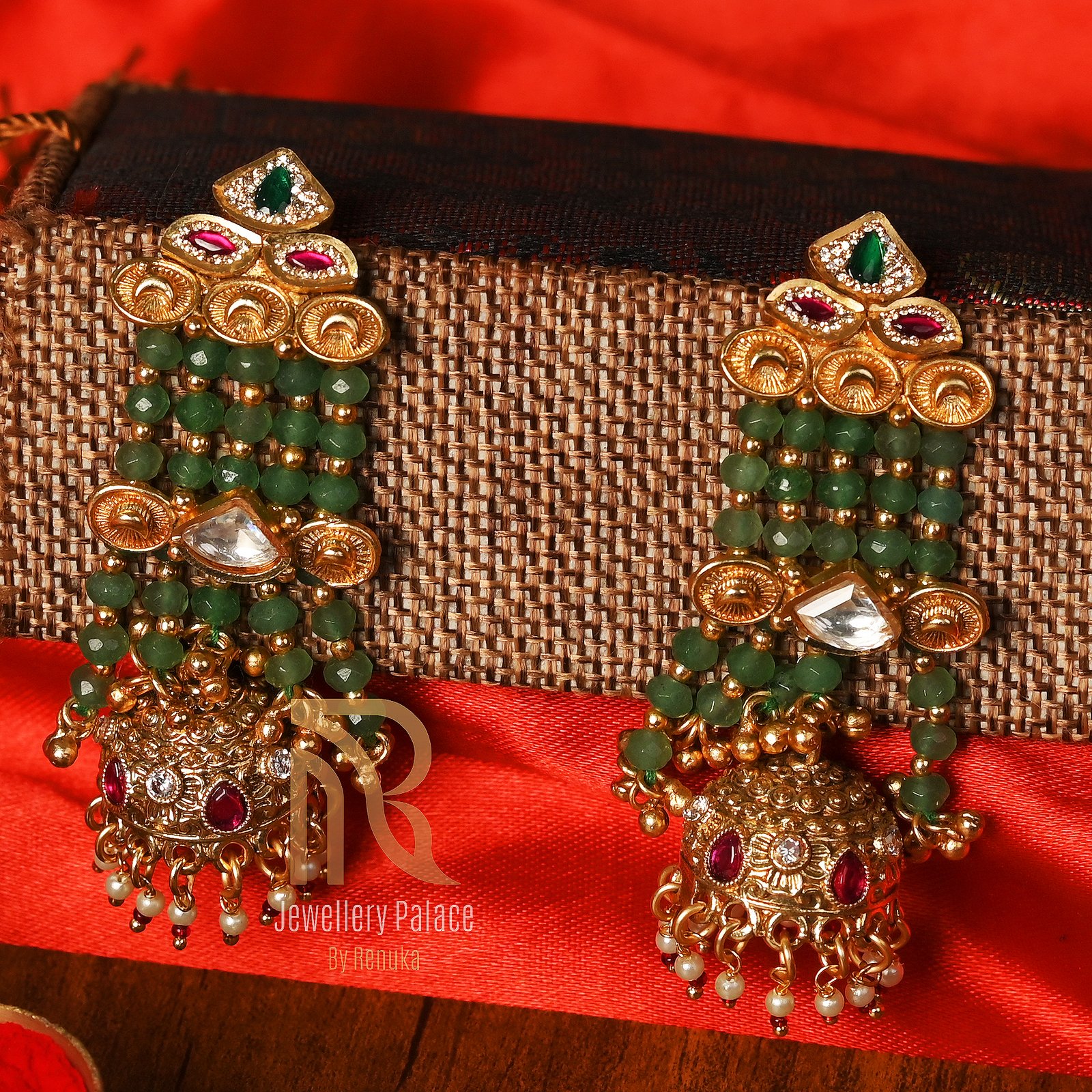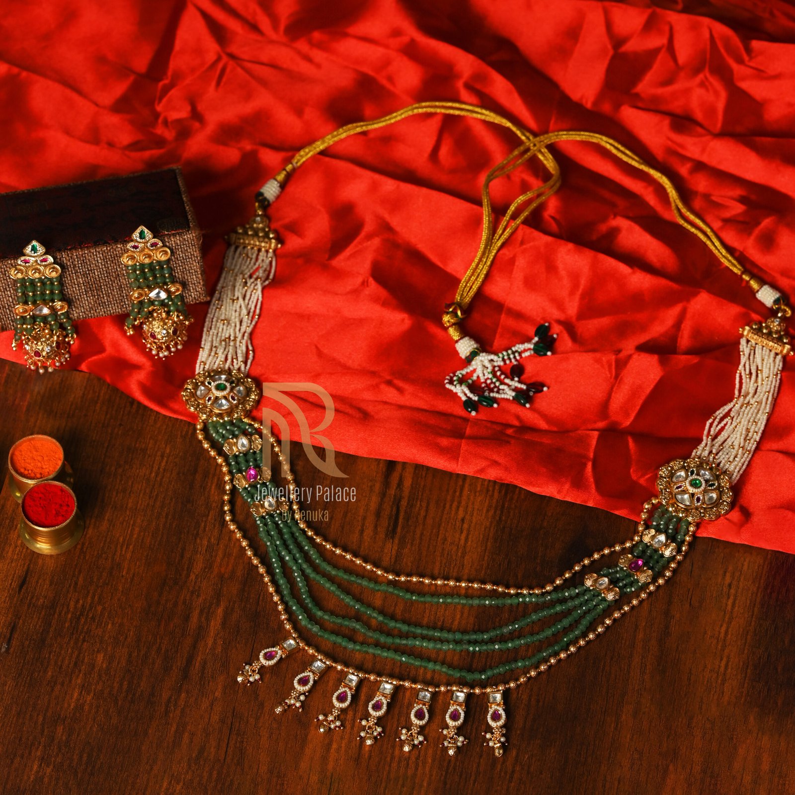 Perfect for brides, festive events, and cultural celebrations, this emerald beaded kundan necklace pairs beautifully with traditional attire such as sarees, lehengas, and anarkalis, making it a timeless treasure in any jewelry collection.